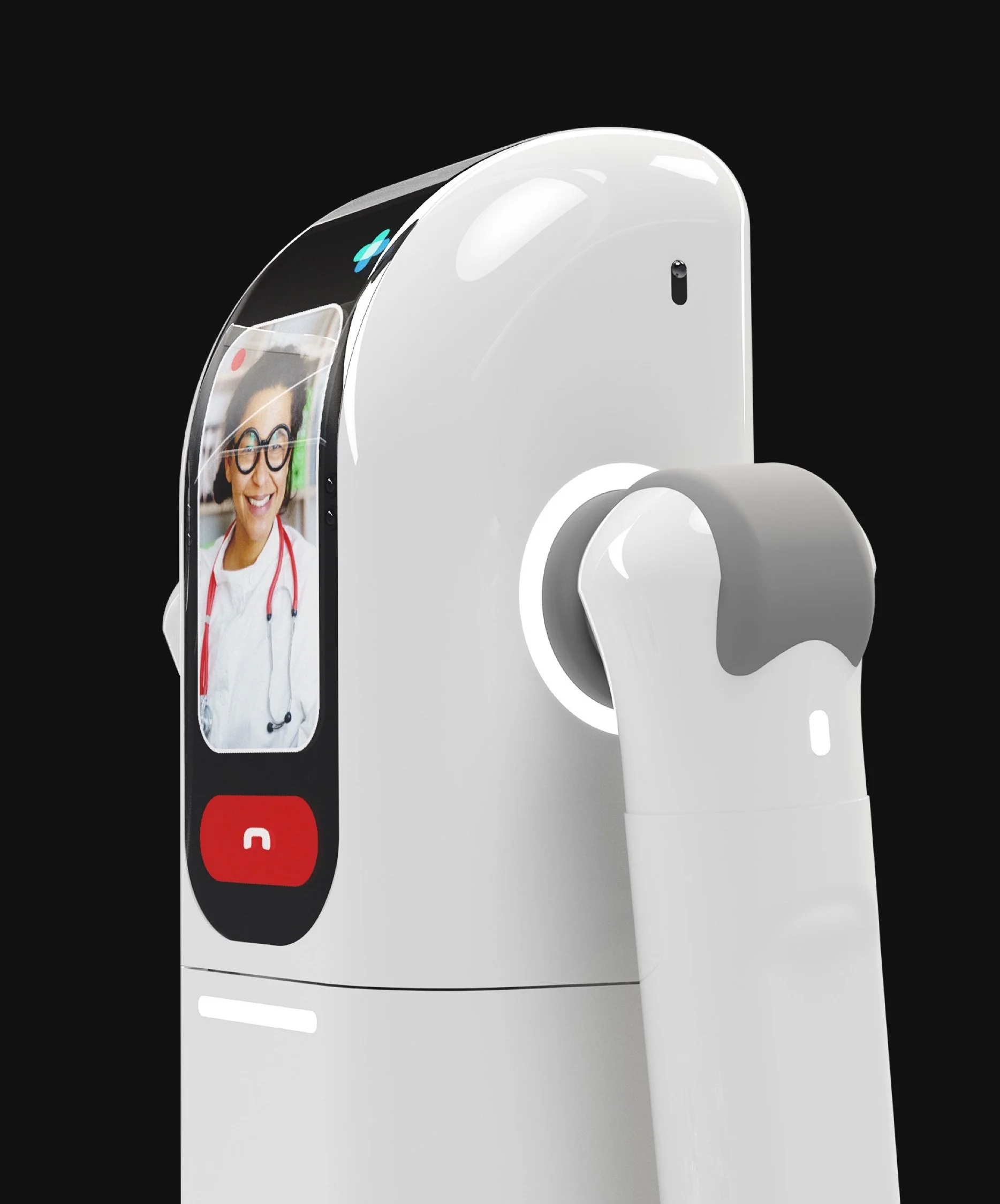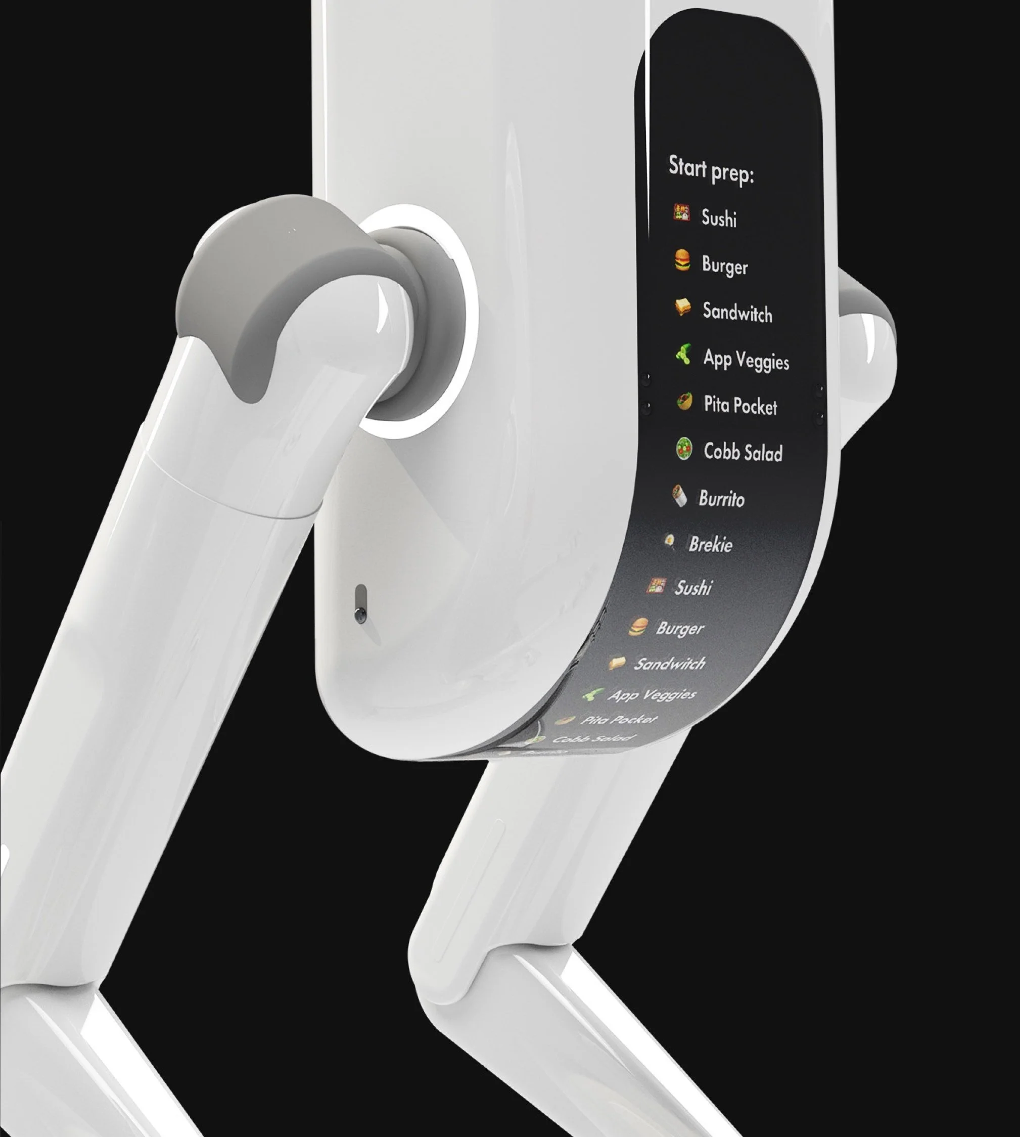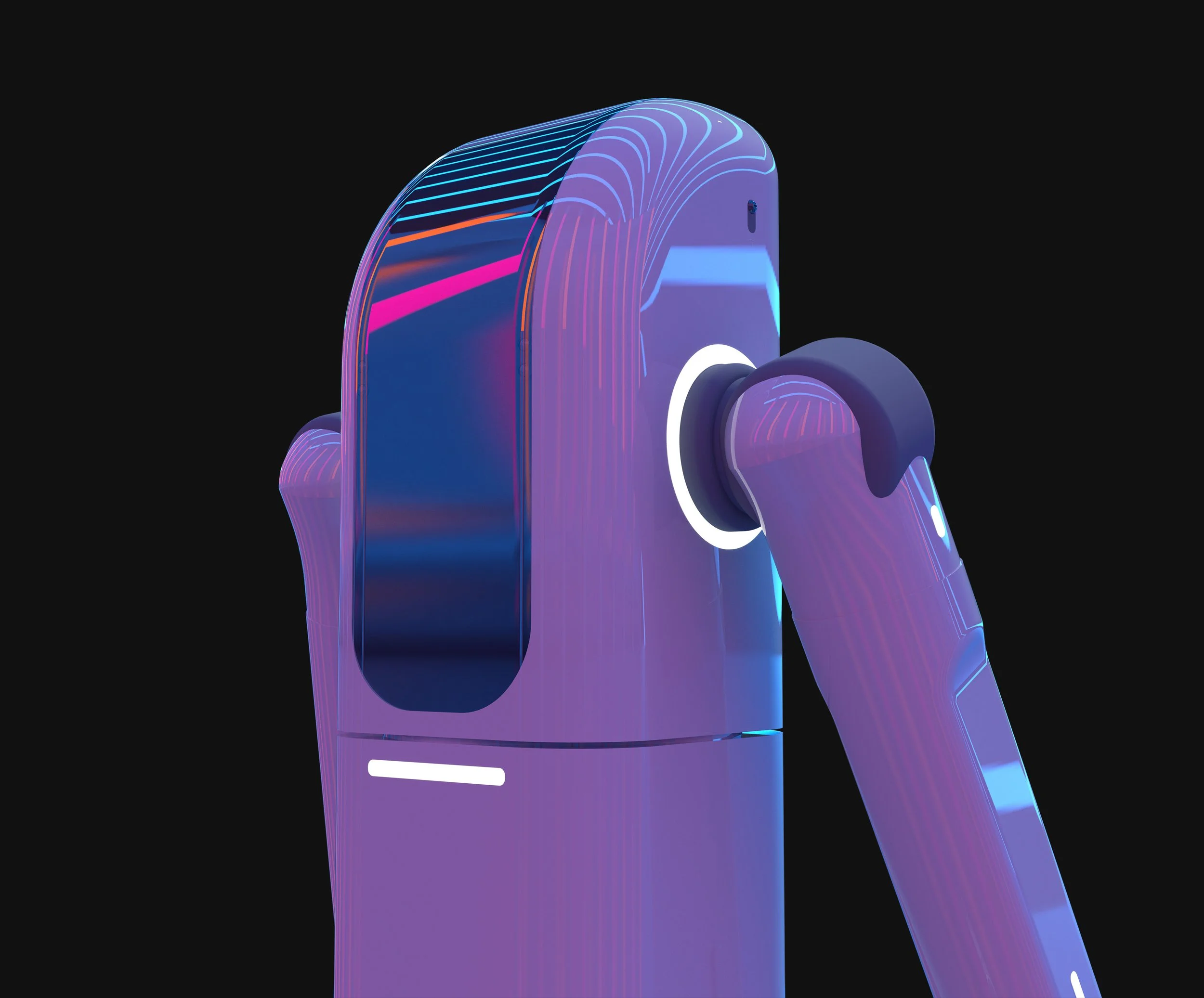 What about the face? In Sci-fi, most humanoids are complete with shoulders, neck and face, but many industry experts promote the opposite approach. I designed the Waterfall display with a long, curved design for maximum flexibility and user interaction. The display provides ample space for branding and communication while confidently reflecting a tool, not a human.