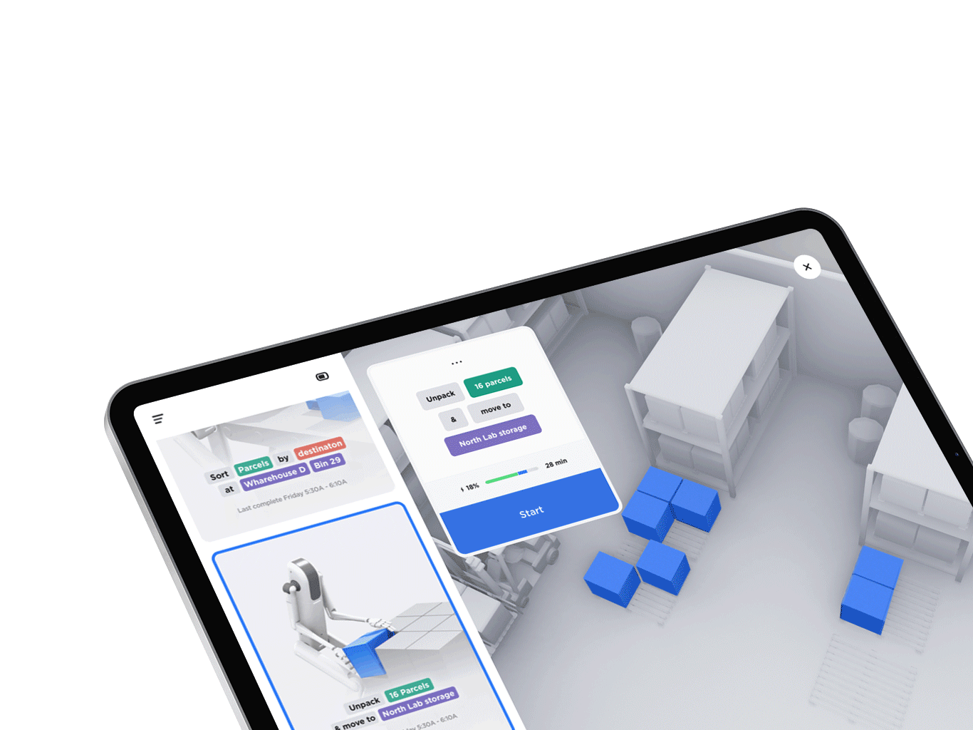 When you open the companion app, you land in a simulated environment surrounded by highlighted actionable items. On the left is a panel where you can browse and refine bot tasks.