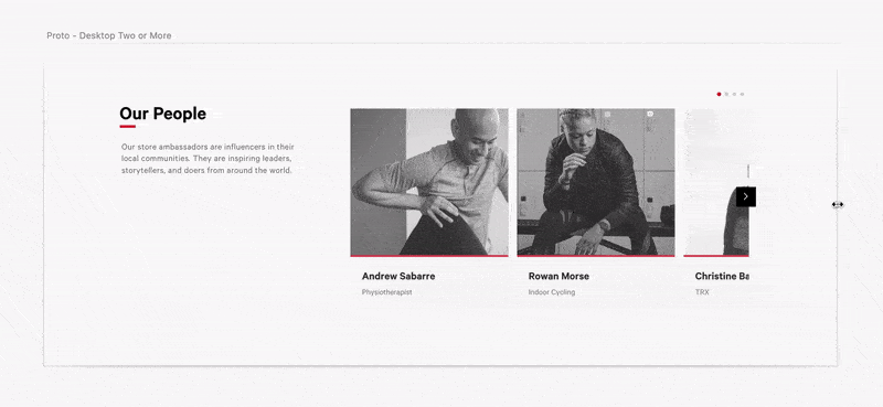 The lululemon website was one of the projects I worked on, building simple prototypes to communicate solutions to behavioural challenges the site was having when responding to smaller device sizes. These prototypes not only provided solutions but also helped illustrate the problem so as to make it simple for everyone to understand. The above is an example of a visual I would use as a visual aid while presenting a solution to an issue.